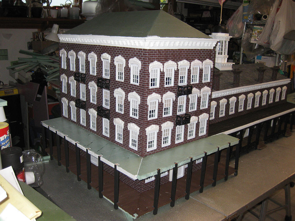 the decorative railings around the porch and the